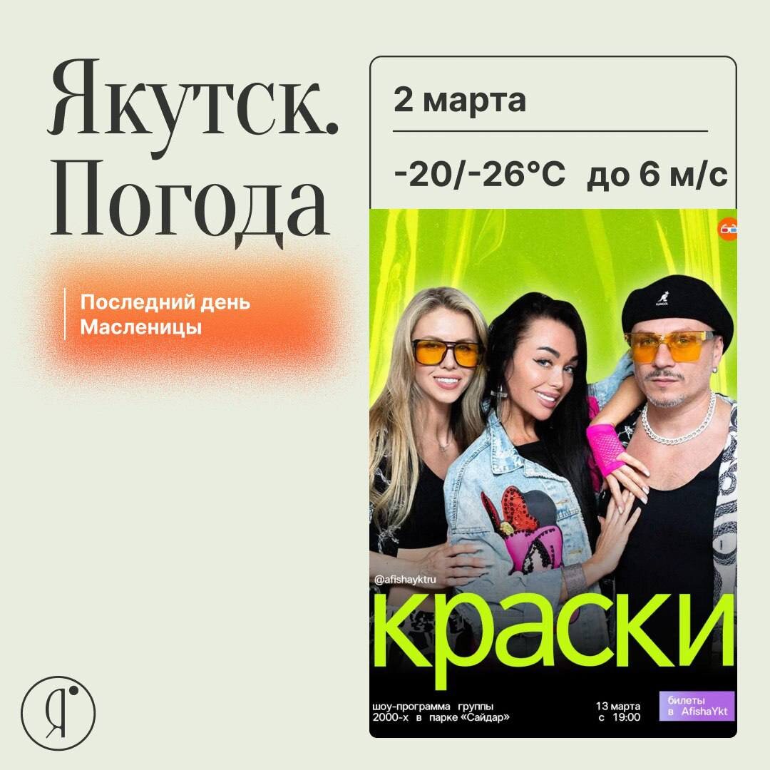 » 13 марта парк «Сайдар» станет центром настоящей музыкальной ностальгии, чьи хиты знает и поёт уже несколько поколений 🪩 Вас ждёт живое исполнение культовых песен: «Старший брат», «Оранжевое солнце», «Сегодня к маме я приехала», «Я люблю тебя, Сергей» и другие любимые хиты, которые возвращают в самые яркие и тёплые моменты жизни. ❄️ 13 марта с 19:00 📍 Парк льда и света «Сайдар», о. Сайсары 🎫 Билеты продаются на сервисе AfishaYkt Online Якутия | Ждем вас в МАХ