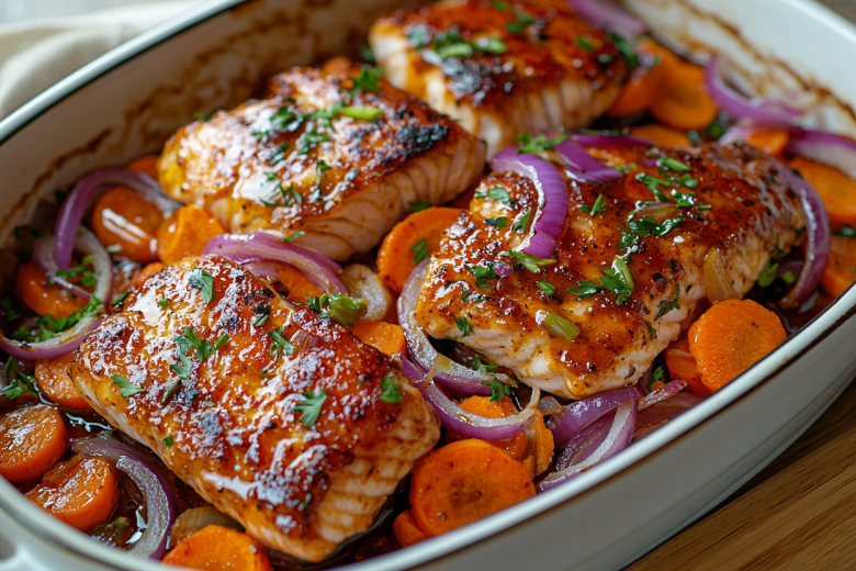 1. Горбуша, запечённая с овощами в духовке