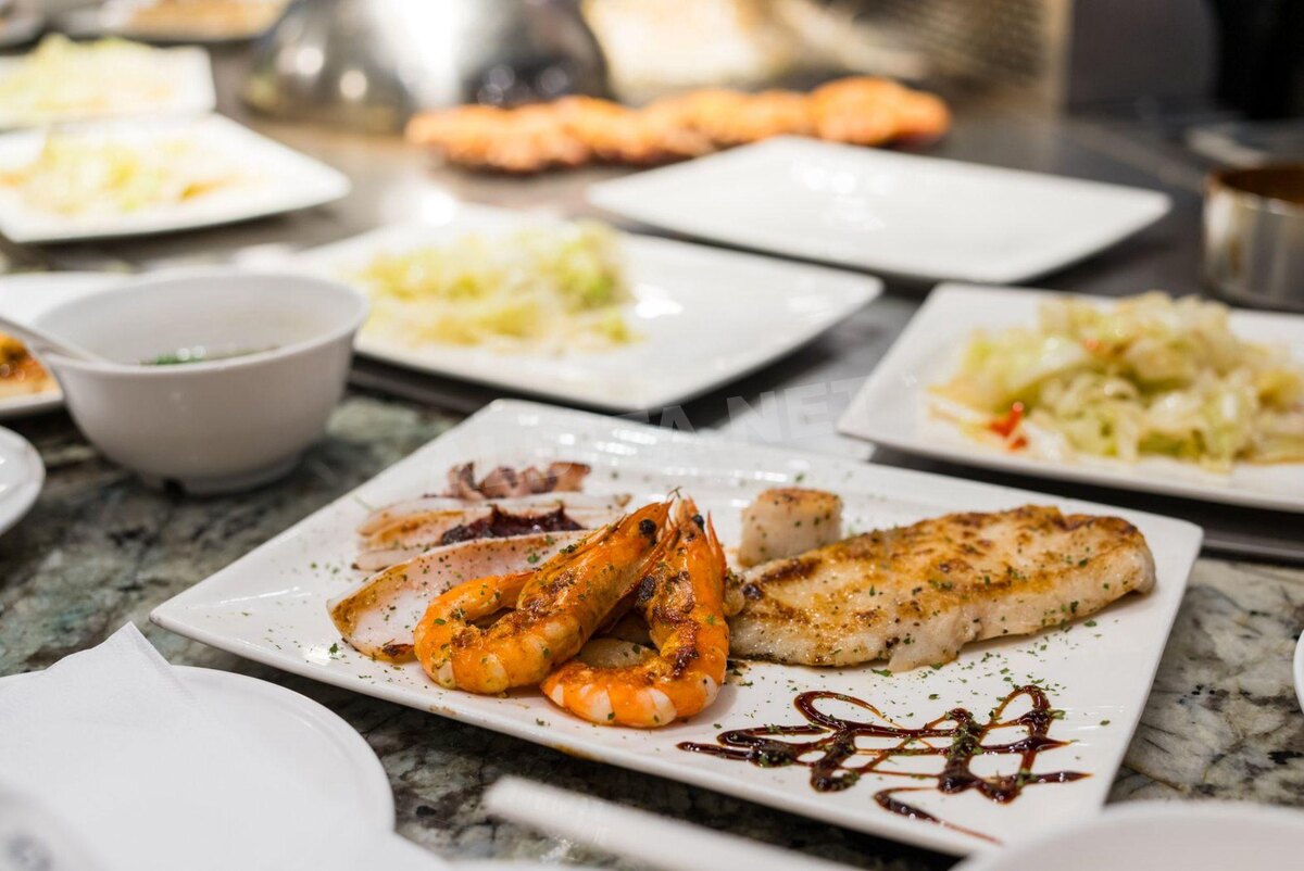 Различные морепродукты.