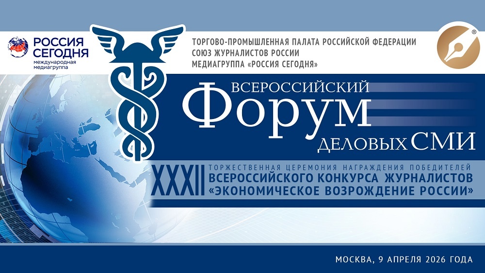 Торгово-промышленная палата РФ, Союз журналистов России и Медиагруппа «Россия сегодня» приглашают журналистов и руководителей СМИ принять участие в XVII Всероссийском форуме деловых СМИ. Форум пройдет 9 апреля 2026 года в Международном мультимедийном пресс-центре «Россия сегодня». На нем будут обсуждаться профессиональные задачи медиа, вопросы взаимодействия и консолидации представителей отрасли для решения актуальных отраслевых проблем, вызовы современным СМИ, алгоритмы, платформы и работа с большими данными, оценка эффективности экономического потенциала региональных медиа, искусственный интеллект и новые возможности для медиа и многие другие вопросы. В форуме примут участие президент ТПП РФ Сергей Катырин, председатель Союза журналистов России Владимир Соловьев, генеральный директор Медиагруппы «Россия сегодня» Дмитрий Киселев, председатель Комитета ТПП РФ по предпринимательству в сфере медиакоммуникаций, генеральный директор «СТП МЕДИА» Игорь Потоцкий, декан факультета журналисти