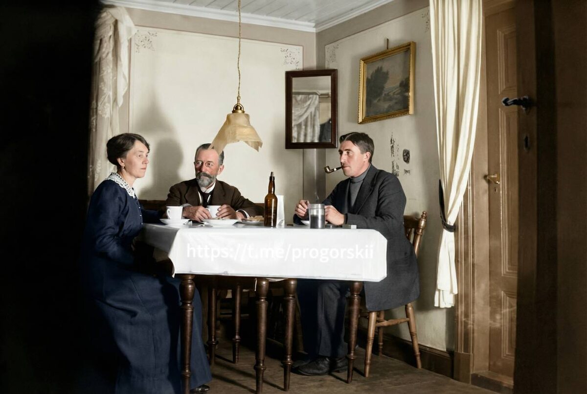 С.М. Прокудин-Горский запечатлён в Норвегии вместе со старшим сыном Дмитрием (и, вероятно, Щедриной), 1918-1919 годы. Это вариант снимка, который уже встречался ранее только там, кажется, у Сергея Михайловича в руке было пиво. #автор Ещё больше фотографий: ____________ Telegram | ВК | MAX | Дзен | Пикабу