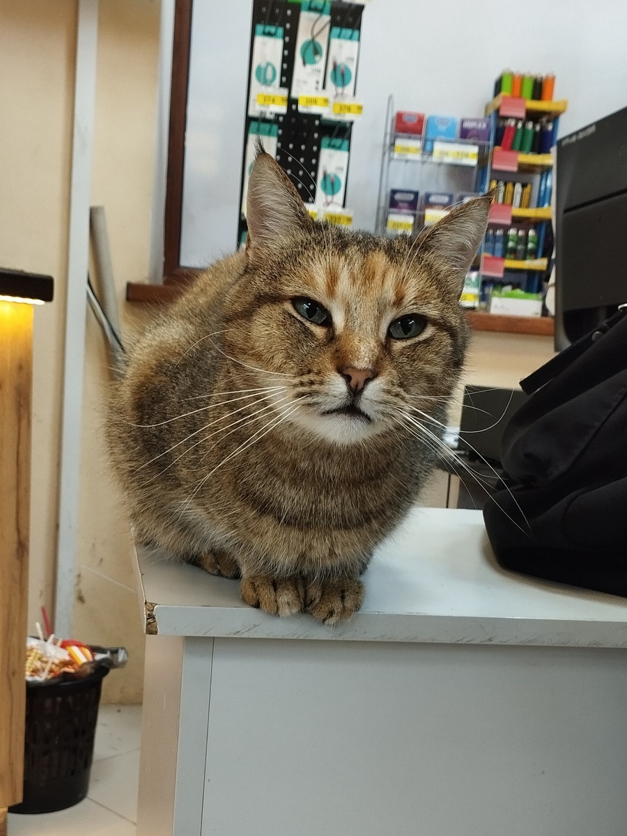 Опасный зверёк затаился у кассы в магазине Магазинчик. После оплаты покупки, рэкетир требует свой процент. У кого нет чего-нибудь вкусненького, можно хоть лаской. А тех, кто не погладит, ждёт наказание в виде яростного укуса. На крики "Милиция" и "Это самово, волюнтаризьм", бандит отворачивался и делал вид, что что-то потерял (мышку там... Или жучка какого-нибудь). Которепортёр почувствовал, что зверёк изготовился к прыжку и еле унёс от туда свои ноги. На связи 😎. Которепортёр