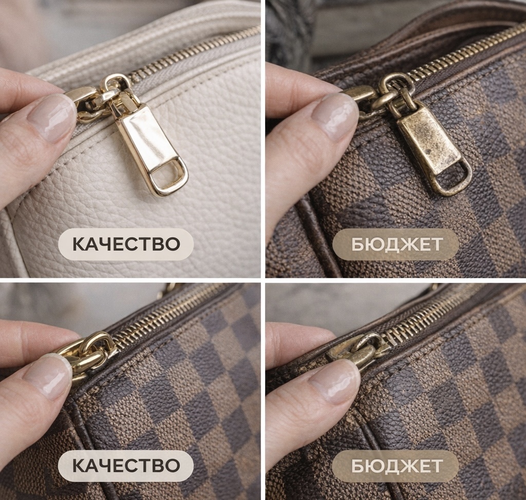 Возьмите сумку в руку и потрогайте фурнитуру. Не просто посмотрите, а проведите пальцем. В дешевых сумках металл часто кажется «пустым» или пластиковым на ощупь, даже если он покрашен «под золото». Через пару месяцев такая позолота сотрется на углах и в местах трения, и молния станет «лысой».
