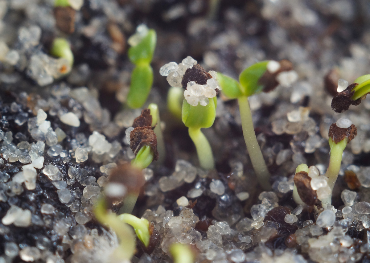 Часто бывает, что росток не может сбросить «шапочку» (кожуру семени) и погибает. Мелкие частицы песка работают как легкий абразив. Пробиваясь сквозь слой песка, семя трется о песчинки, что помогает ему легче освободиться от оболочки.