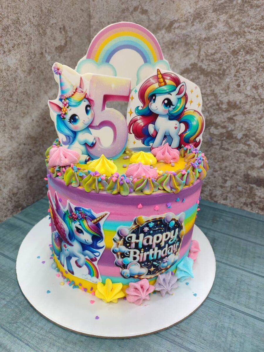 Это тот самый момент, когда глаза загораются ✨ Радуга, единороги, большая цифра 5 и ощущение настоящего праздника. Мы всегда стараемся, чтобы торт был не только ярким снаружи, но и вкусным внутри. Чтобы его не просто сфотографировали, а съели до последней крошки 🤍 Детские праздники они про эмоции. А мы просто бережно оформляем их в крем и бисквит. Сохрани идею, если впереди день рождения 🎂