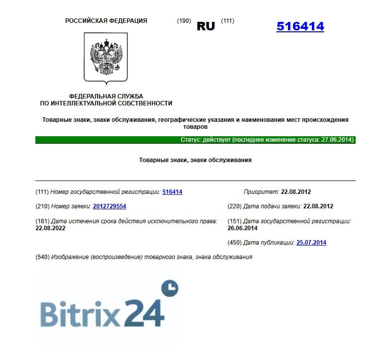 Товарный знак "Bitrix24" зарегистрирован в Роспатенте и после 1 марта 2026 года его можно использовать публично и легально.