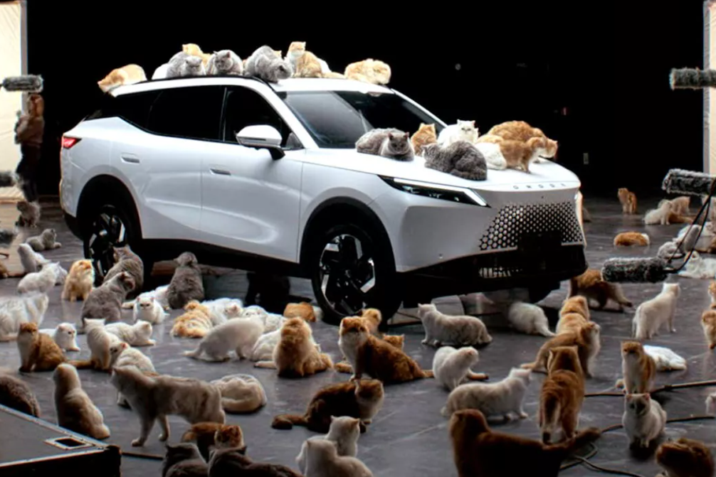 Компания Omoda представила в Великобритании свой кроссовер Omoda 7. Вместо традиционных гонок по серпантинам марка устроила необычную презентацию. Машину засыпали цветами, облепили десятками кошек и облили дождем со снегом. Мероприятие прошло в рамках Лондонской недели моды. Фото: https://www.carscoops.com/ Чтобы показать шумоизоляцию стекол, на Omoda 7 посадили пушистых котов. Они мяукали и топали лапами снаружи. Внутри салона по задумке рекламщиков должно быть тихо. Хотя журналисты заметили, что обычное автостекло и так неплохо глушит кошачье мурлыканье. Для демонстрации ароматов интерьера машину завалили тысячами цветов. Потом на кроссовер направили дождь и снег, пока он стоял на беговых барабанах. Таким образом хотели показать, что гибридная установка справляется с любой погодой. Технически Omoda 7 - это гибрид с полуторалитровым мотором и батареей на 18,3 кВт*ч. Пиковая мощность составляет 201 л.с., а разгон до сотни займёт всего 8,4 секунды. Запас хода заявлен больше 1100 километ