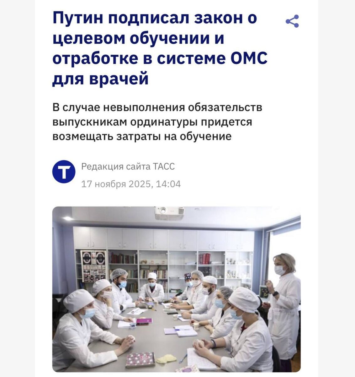 👩⚕️ С сегодняшнего дня студенты медицинских вузов обязаны будут отработать минимум 3 года в больницах с системой ОМС