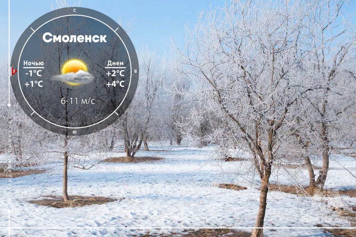 Завтра жителей и гостей Смоленской области ожидает переменчивая погода. Днем небо будет покрыто облаками с небольшими просветами солнца. Ночные часы пройдут существенно без осадков, однако уже днем возможен слабый дождь и мокрый снег. Утром и ночью местами ожидается туман, а на некоторых участках дороги прогнозируется образование гололедицы. Ветер будет дуть западный со скоростью 6-11