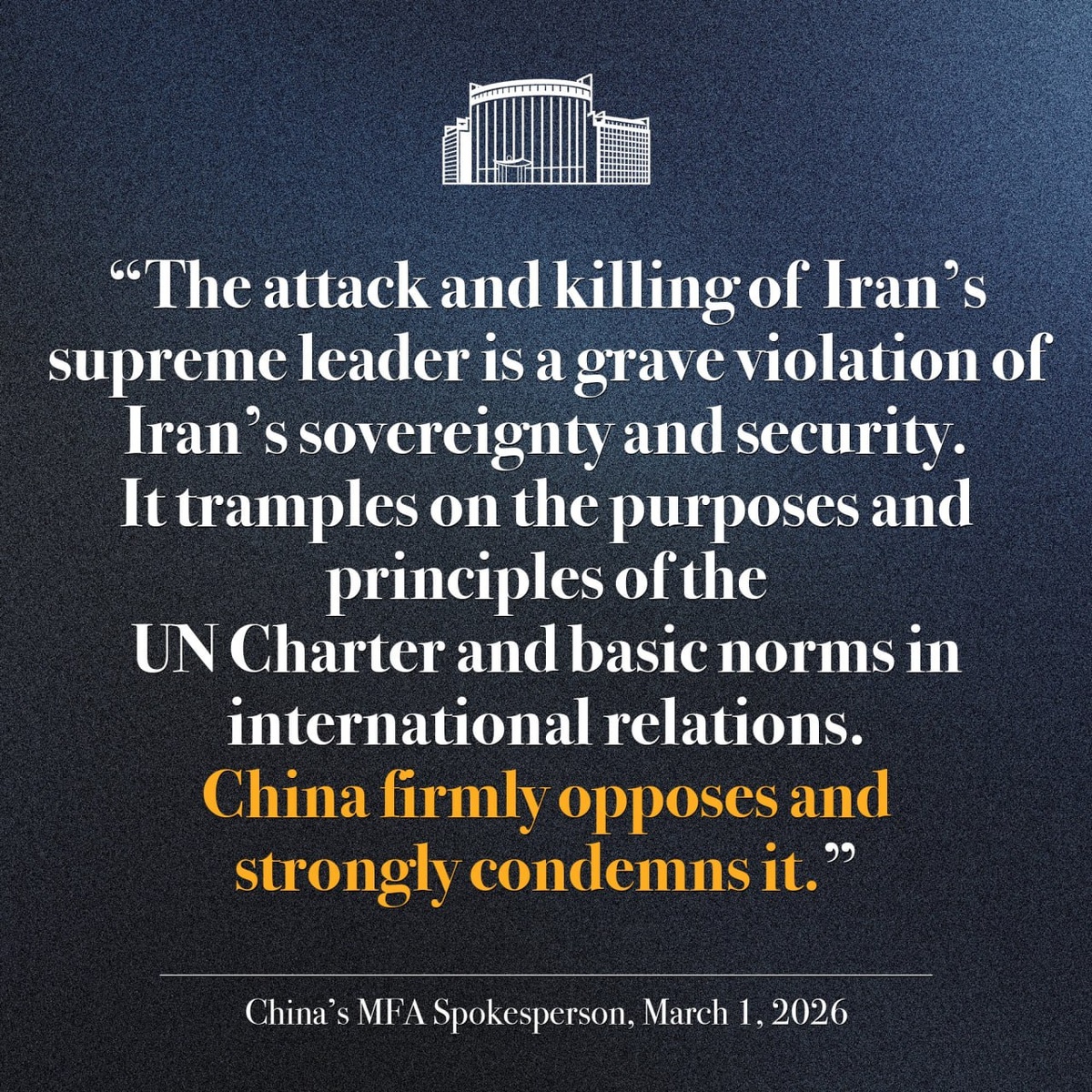 China 'firmly opposes and strongly condemns' the killing of Iran’s supreme leader