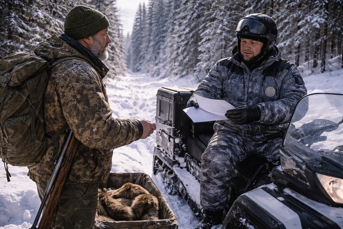 Документы у него были в порядке. Разрешение на оружие — есть. Разрешении оформлены. Путёвка — на руках. Но проверка в глухой тайге — это всегда нерв. Потому что инспектор — это не просто человек в форме. Это закон. А закон, как известно, любит бумагу и формальности, а не объяснения «я только что с обхода».