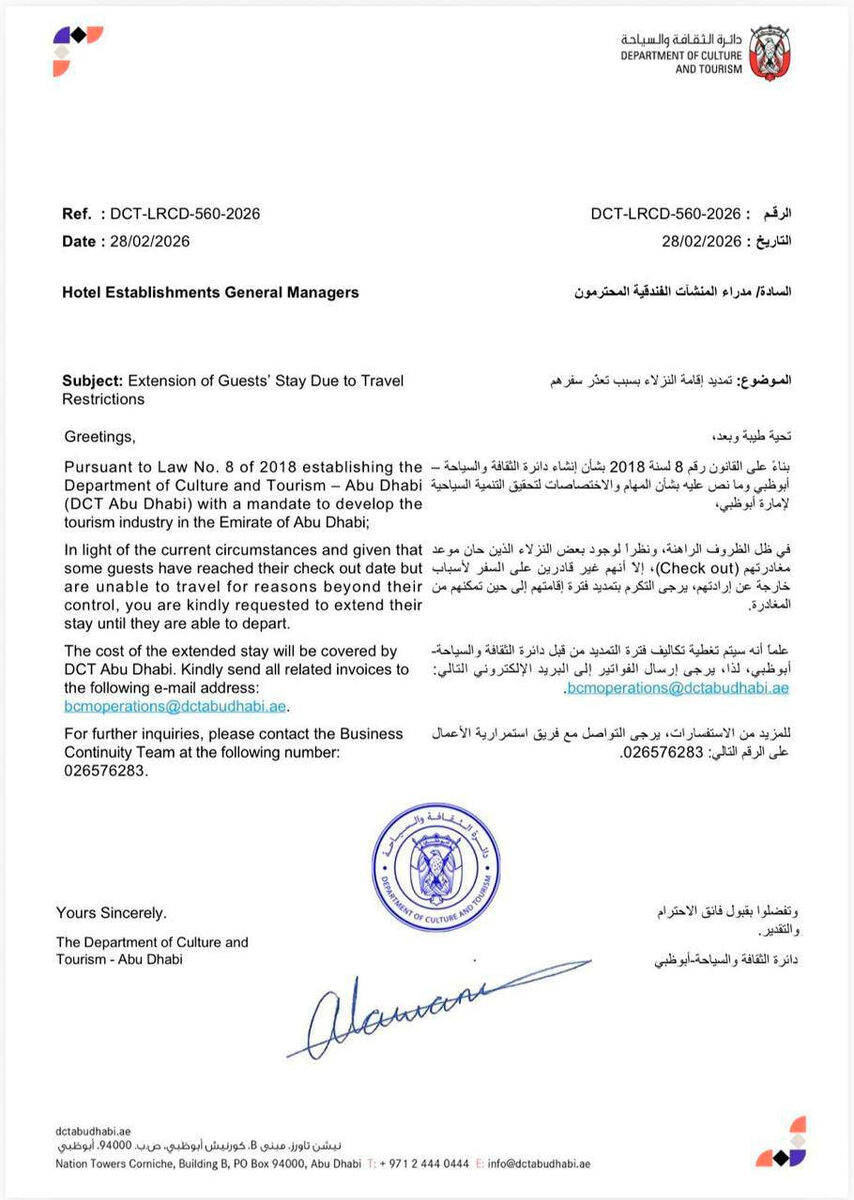 По просьбам подписчиков публикуем циркуляр департамента туризма правительства Абу-Даби.