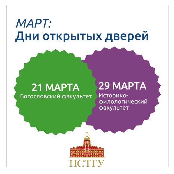 С первым днем весны! 🤌 Март в ПСТГУ обещает быть насыщенным: это месяц, когда университет открывает двери для тех, кто ищет не просто диплом, а свое призвание. Сейчас самое время чтобы окончательно определиться с набором ЕГЭ и стратегией поступления. ❤️ Главные события месяца – Дни открытых дверей двух фундаментальных факультетов: Богословского и Историко-филологического. Кроме того, в марте университет порадует абитуриентов Филологическим фестивалем и онлайн-презентациями. Регистрируйтесь на мероприятия для абитуриентов по ссылке и подписывайтесь на каналы для поступающих ⬇️ Бакалавриат/специалитет/училище @abitPSTGU2026 Магистратуры @mastersPSTGU Подписаться на ПСТГУ 👨🏫 Задать вопрос