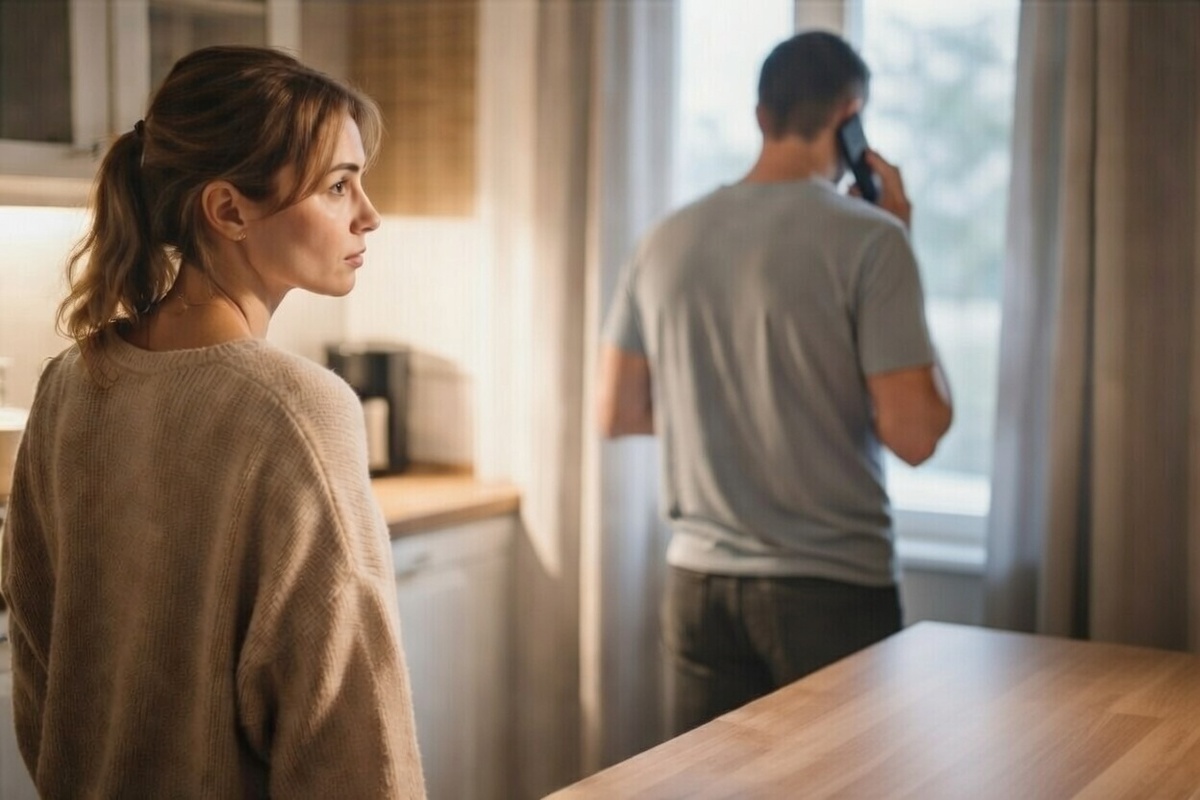 Он стоял ко мне спиной, у окна. В руке телефон, плечи чуть подняты, как у человека, который мёрзнет, хотя в квартире было тепло.