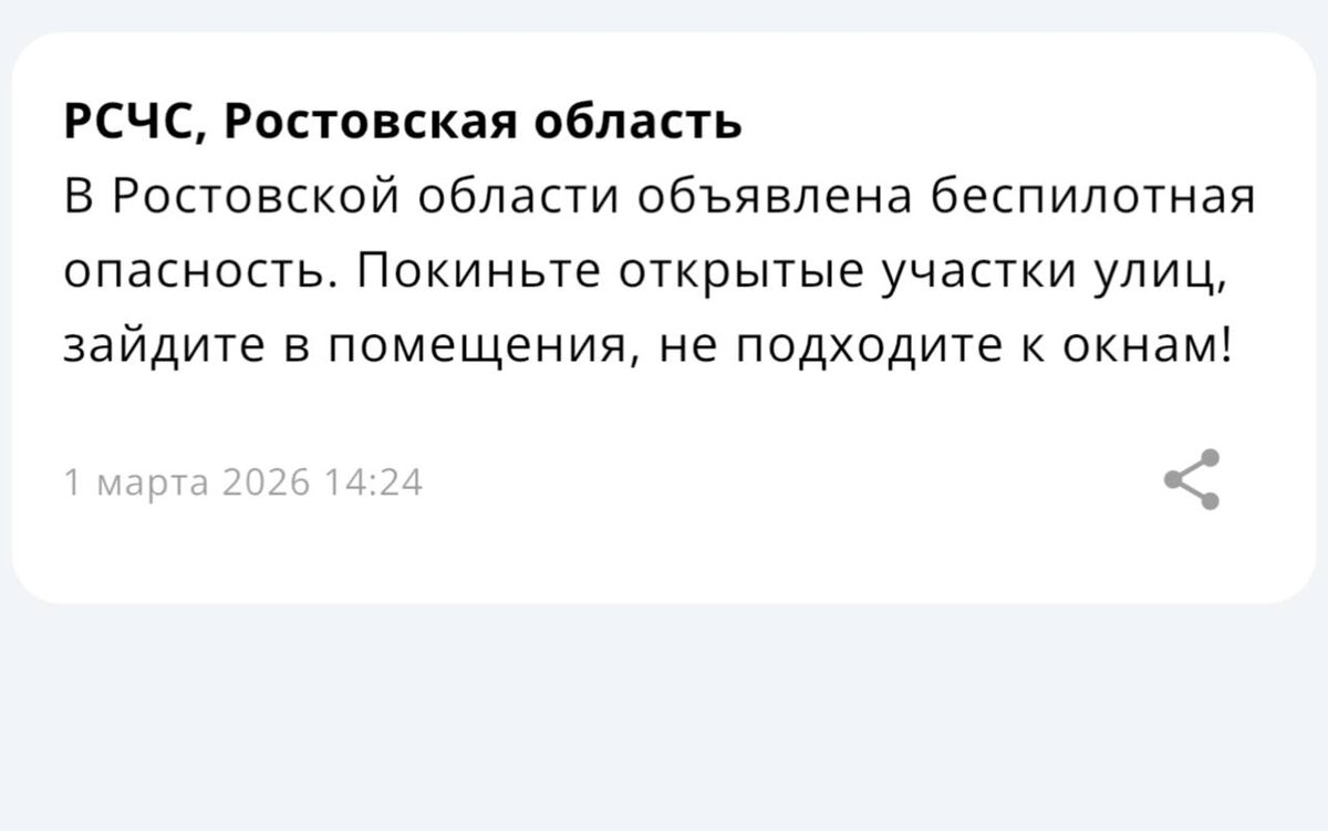 ❗️В Ростовской области объявлена беспилотная опасность