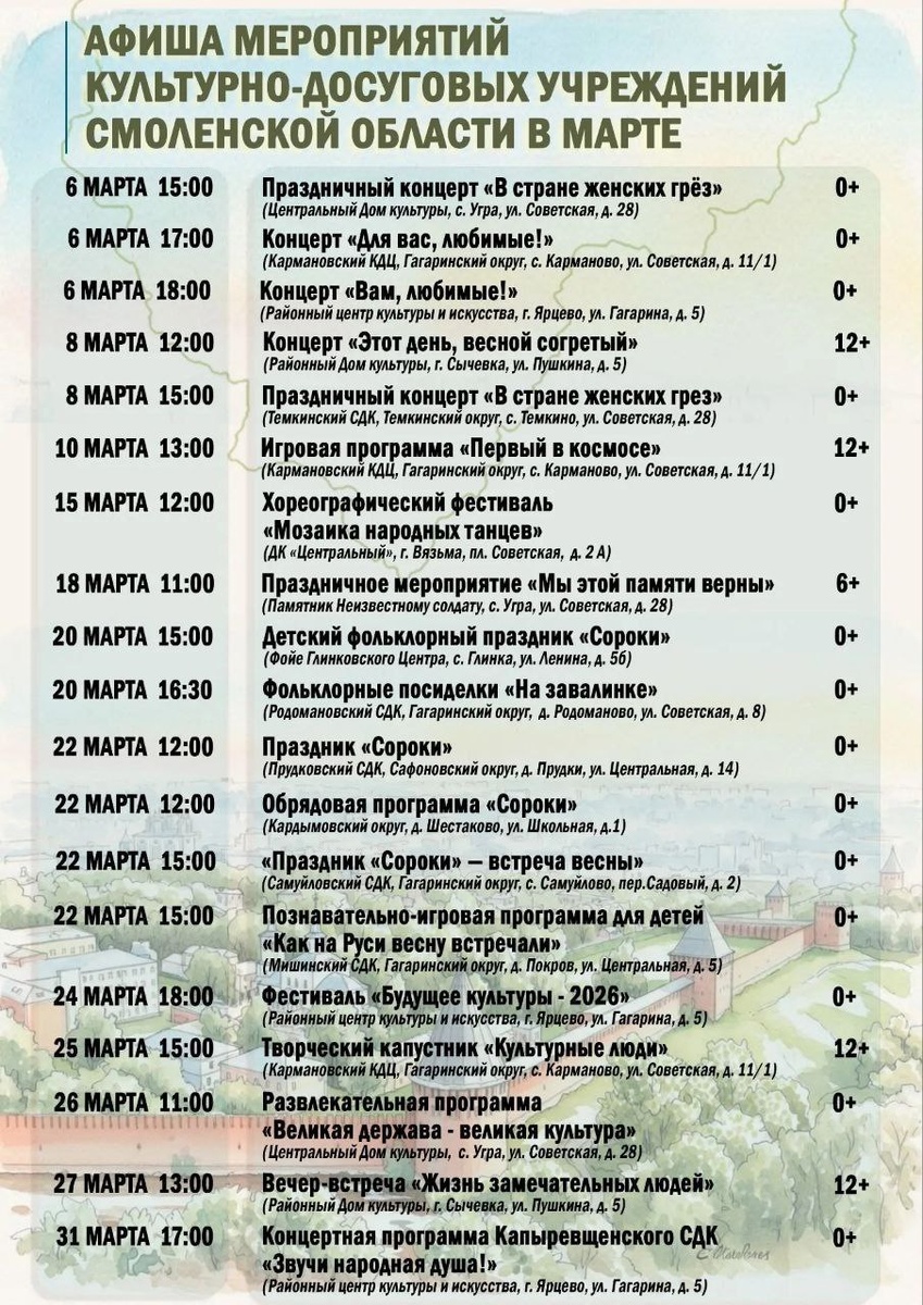 Планируем досуг в марте! 🌞