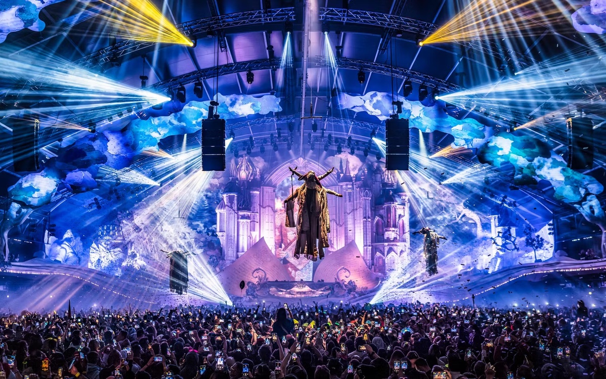 - Атмосфера «зимней сказки»: Фирменная магия Tomorrowland с масштабными декорациями, пиротехникой и тематикой (например «The Book of Wisdom»).