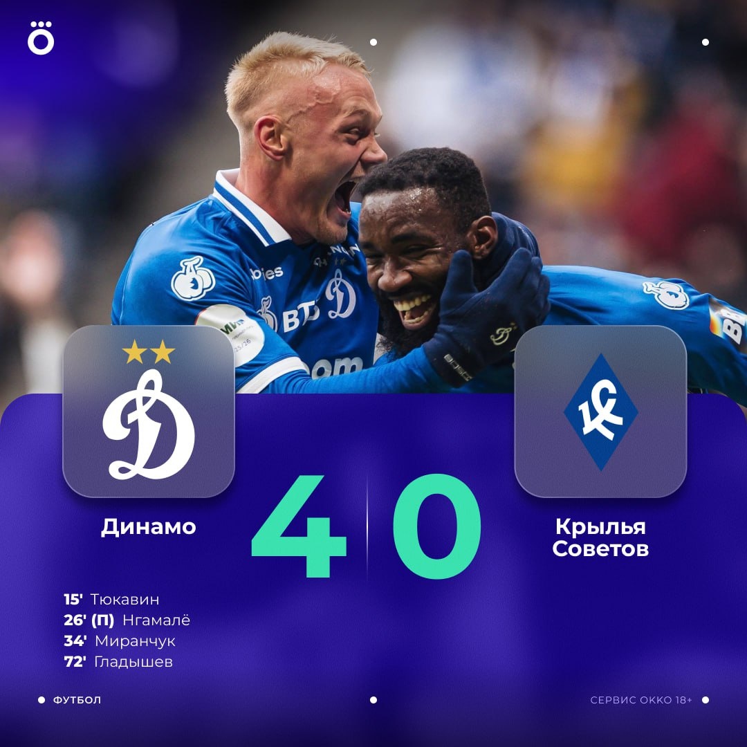 ⚽ «Динамо» отлично отдохнуло. Парни разгромили «Крылья» в Москве.