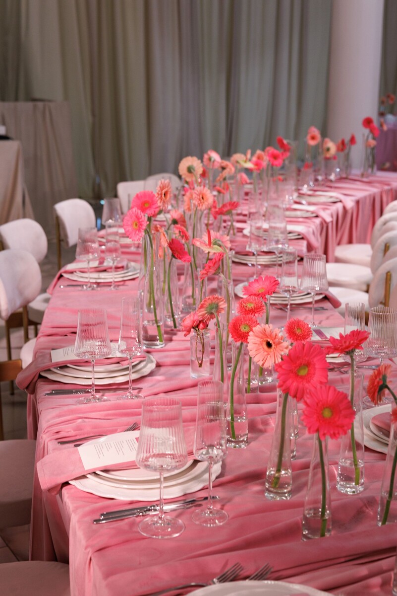 Как создать эффектный свадебный декор: бархат, волны и розовый монохром