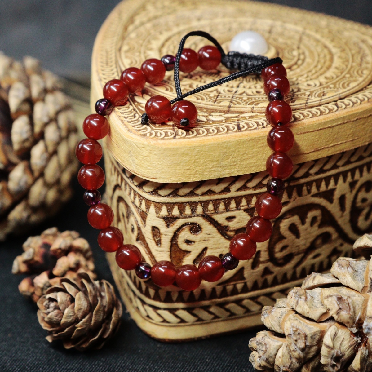 С первым днем весны! ❤️ Браслет "Весна-Красна" из тонированного красного агата и граната родолита посвящен чудесному времени наступления весны. Он про энергию жизни, заряд сил, восстановление и пробуждение. Теплый ярко-красный агат и темно-малиновый родолит создают необычное, но при этом гармоничное сочетание, а благодаря чередованию бусин разного размера, браслет получился особенно живым. Весна-Красна - это классическое народное обращение к весне, где слово "красна" означает "красивая", "прекрасная", "нарядная". Весну всегда очень ждали и зазывали, поэтому такое название отражает радость пробуждения природы, яркость первых цветов, зелени и солнечного света после долгой зимы. Когда у меня спросили, есть ли у меня красный браслет, оказалось, что на данный момент нет, и я сделала этот браслет на заказ. В процессе работы он меня так порадовал и принес по-настоящему весеннее настроение, что имя для браслета пришло само - Весна-Красна. Тем более, создание браслета совпало с наступлением кал