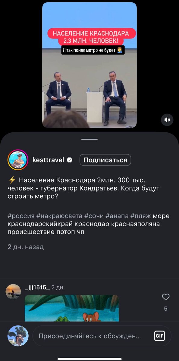 Мне скидывают ссылки на новость о том, что в Краснодаре 2.3 млн человек живет с иллюстрацией моим же видео, круг замкнулся