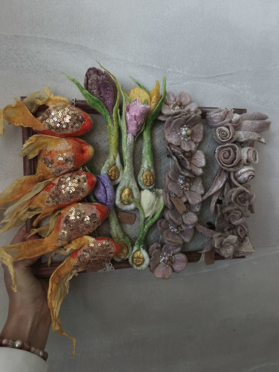 Весенние нежные крокусы броши выполнены из шерсти и декоративных волокон в технике мокрое валяние. Так же золотые рыбки и милые букетики в пастельных оттенках. Цены праздничные. Рыбки 600 Крокусы 500 Фиалочки 500 Букетики 700 🏠 Адрес : Краснодар, ул.40лет Победы 11, Книжный рынок, Павильон 118, с 11°°до 17°° 🟢Понедельник - выходной, Вход свободный @podarkiart23