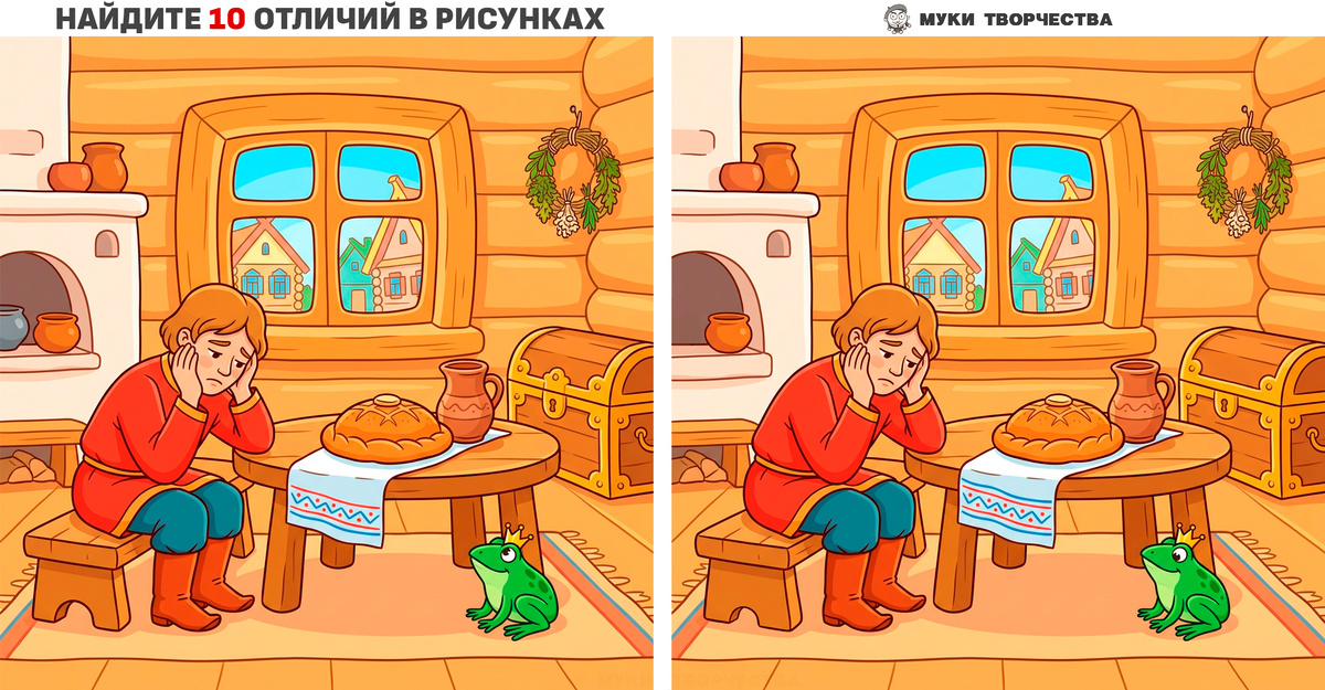 Сможете найти 10 отличий между этими картинками? Тест на внимательность про Царевну-лягушку