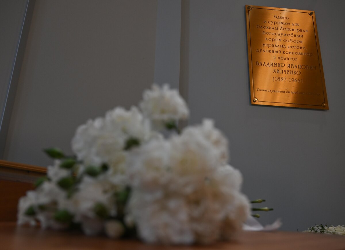 1 марта, в день праздника Торжества православия, в Князь-Владимирском соборе сразу после утренней литургии состоялось торжественное освящение памятной доски в честь Владимира Ивановича Зинченко – блокадного регента собора. Памятную доску открыли на хорах собора – именно там, где в годы блокады, на Пасху 1942 года, усилиями регента был собран хор из истощенных, но не сломленных духом ленинградских певчих. В тяжелейших условиях осажденного Ленинграда они продолжали свое дело, исполняя пасхальные песнопения под вражескими обстрелами. Это служение стало истинным свидетельством духовной силы ленинградцев и их верности православной церковной традиции. Как сообщил в ходе церемонии настоятель Князь-Владимирского собора иерей Илия Макаров, в годы Великой Отечественной войны регент собора Владимир Зинченко, превозмогая лишения и опасность, ежедневно нес церковное послушание в блокадном городе. Он при любых обстоятельствах сохранял традицию богослужебного пения и активно поддерживал духовную жизн