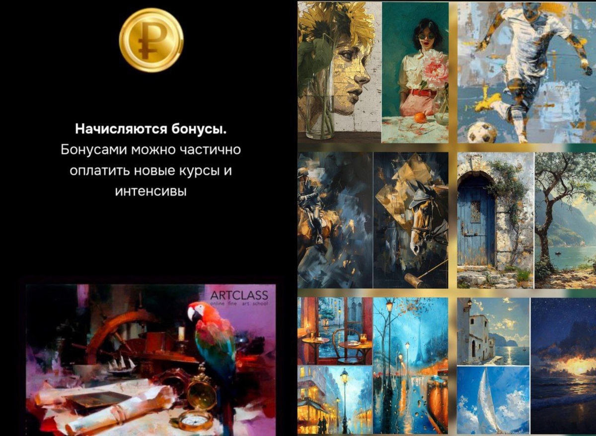 , КАК РАБОТАЮТ БОНУСЫ💰✨ Бонусы начисляются за покупку игр и только во время их проведения. Начисление бонусов происходит автоматически на этапе оформления заказа, в размере потраченной суммы. Вам придёт письмо с уведомлением о начислении. Общую сумму действующих бонусов вы можете увидеть нажав на иконку своего профиля в правом верхнем углу в личном кабинете https://course.art-class.online/ Начисленные за игру бонусы несгораемые, их можно копить. БОНУСАМИ можно частично ОПЛАТИТЬ любые наши интенсивы и курсы (не марафоны) в размере до 30% от общей стоимости заказа. Списание бонусов в счёт оплаты курса (интенсива) происходит автоматически на этапе оформления покупки. Если у вас возникли какие-либо вопросы или сложности в проведении платежа, напишите, пожалуйста, нашему менеджеру @Artclassmanager или в комментариях к этому посту ✍ Успешного творчества, друзья! Мы за то, чтобы обучение было комфортным 👩🎨🎨 Наш сайт 👉 https://paint.art-class.online/