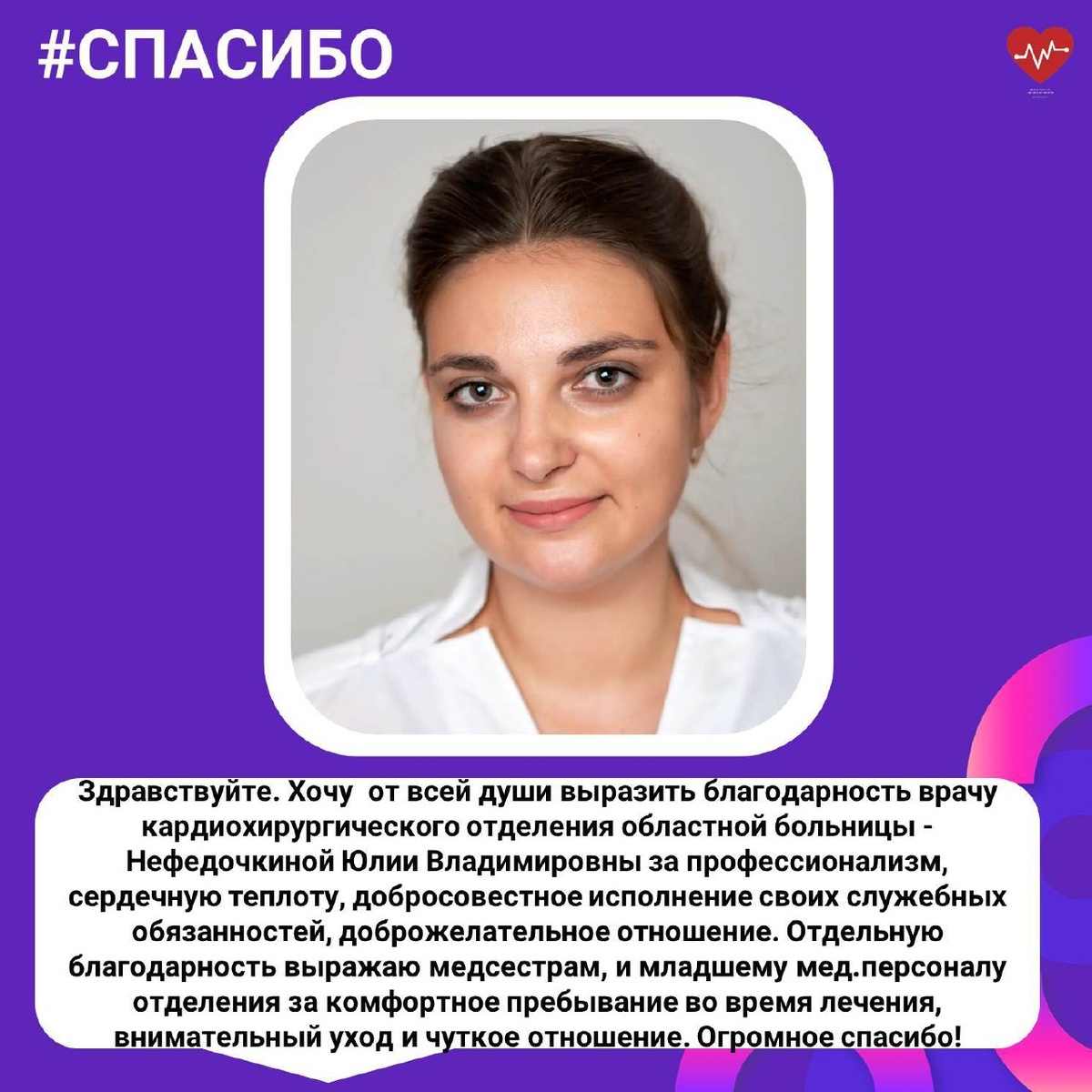 На этой неделе размещаем благодарность врачу Областной клинической больницы - Юлии Нефёдочкиной. Оставить благодарность медикам можно сканируя QR-код с помощью камеры вашего смартфона. Коды находятся на кабинетах врачей в поликлиниках и стационарах.