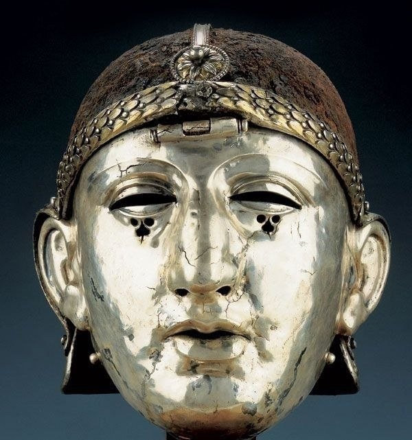 ... Эмесский шлем, весом почти 2 кг. I век, Сирия. Железо, серебро, золото. Найден шлем-маска в 1936 году в городе Хомс. Скорее всего, сделан в Антиохии и выполнен по чертам лица своего владельца. Выполнял функции как парадного, так и боевого: маска и её крепления хрупкие, но сам шлем хорошо защищён. Объект был отреставрирован в Британском музее, а сейчас находится в Национальном музее Дамаска. Терра инкогнита | Неизвестная земля