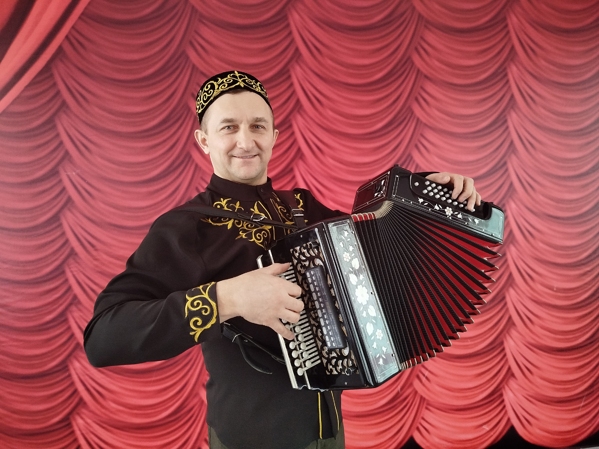 Руслан Карташев - гармонист, концертмейстер народного ансамбля «Надежда» в Городском Дворце культуры, знаком многим нашим читателям. Руслан человек уникальный - ветеран боевых действий на Кавказе, он трижды бывал в зоне СВО с гуманитарным конвоем, давал концерты на фронте и госпиталях. Но сегодня наш рассказ о нем с национальным колоритом.