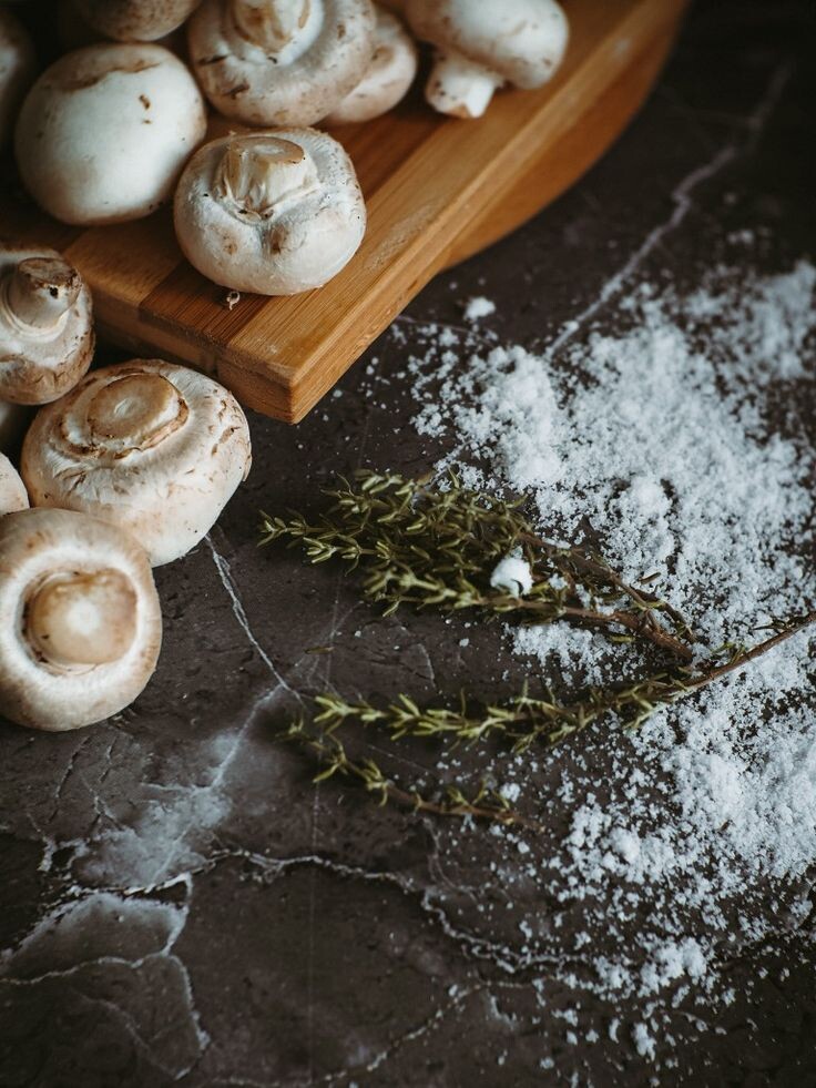 1. Грибы: Быстро промойте шампиньоны под проточной водой (не замачивайте, иначе они впитают воду и станут водянистыми) и обсушите бумажным полотенцем.