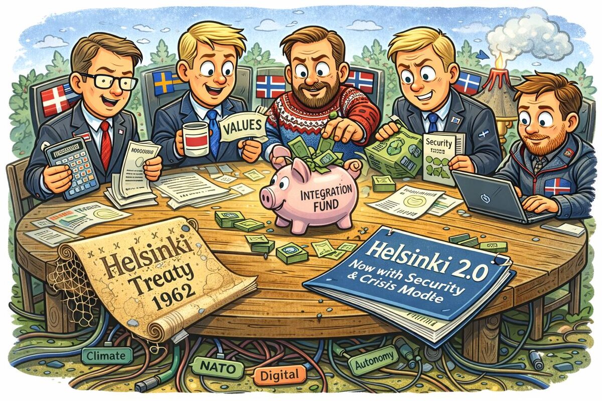 📜🇳🇴🇸🇪🇫🇮🇩🇰🇮🇸Хельсинкский договор 1962 года — это фундамент скандинавского сотрудничества: свобода передвижения, координация законов, общий рынок труда, культурная и социальная интеграция. Документ эпохи холодной войны, написанный для мира, где главной угрозой были танки, а не кибератаки. Теперь его хотят обновить. В повестке — цифровизация, кризисное управление, безопасность, климат, усиление роли автономий вроде Гренландии и Фарер. Формально — модернизация. По сути — попытка превратить мягкое “северное братство” в более структурированный и стратегически собранный союз. Звучит логично. Мир изменился. Регион тоже. Все страны — члены НАТО, напряжённость на Балтике растёт, инфраструктура стала критичной, а гибридные угрозы — обычным делом. Но есть нюанс. Чем глубже интеграция, тем больше обязательств. Больше координации — меньше свободы манёвра. Больше безопасности — больше политических споров о том, кто за что отвечает и кто сколько платит. Скандинавия десятилетиями гордила