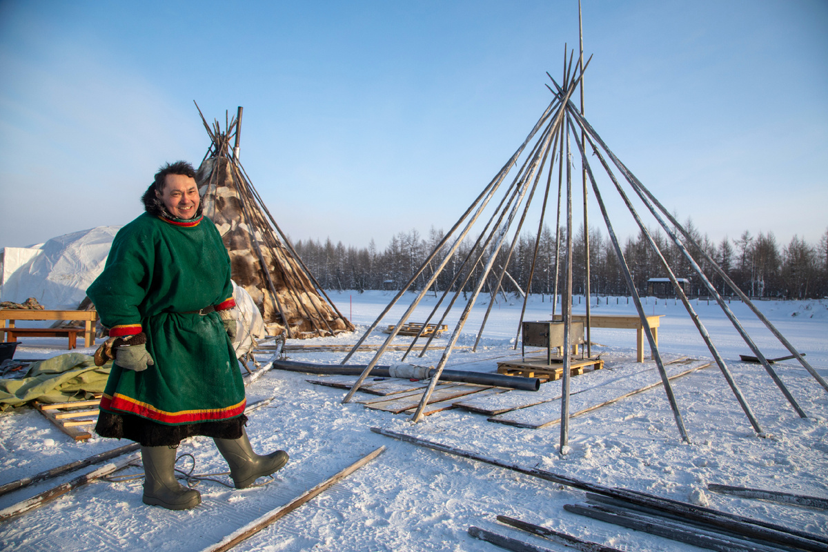 Заглянул к своему другу Афанасию на берег реки Седэяха. Здесь скоро будет проходить праздник — День оленевода. Афанасий ставит свой чум: будет принимать гостей, рассказывать о жизни и традициях ненцев.
