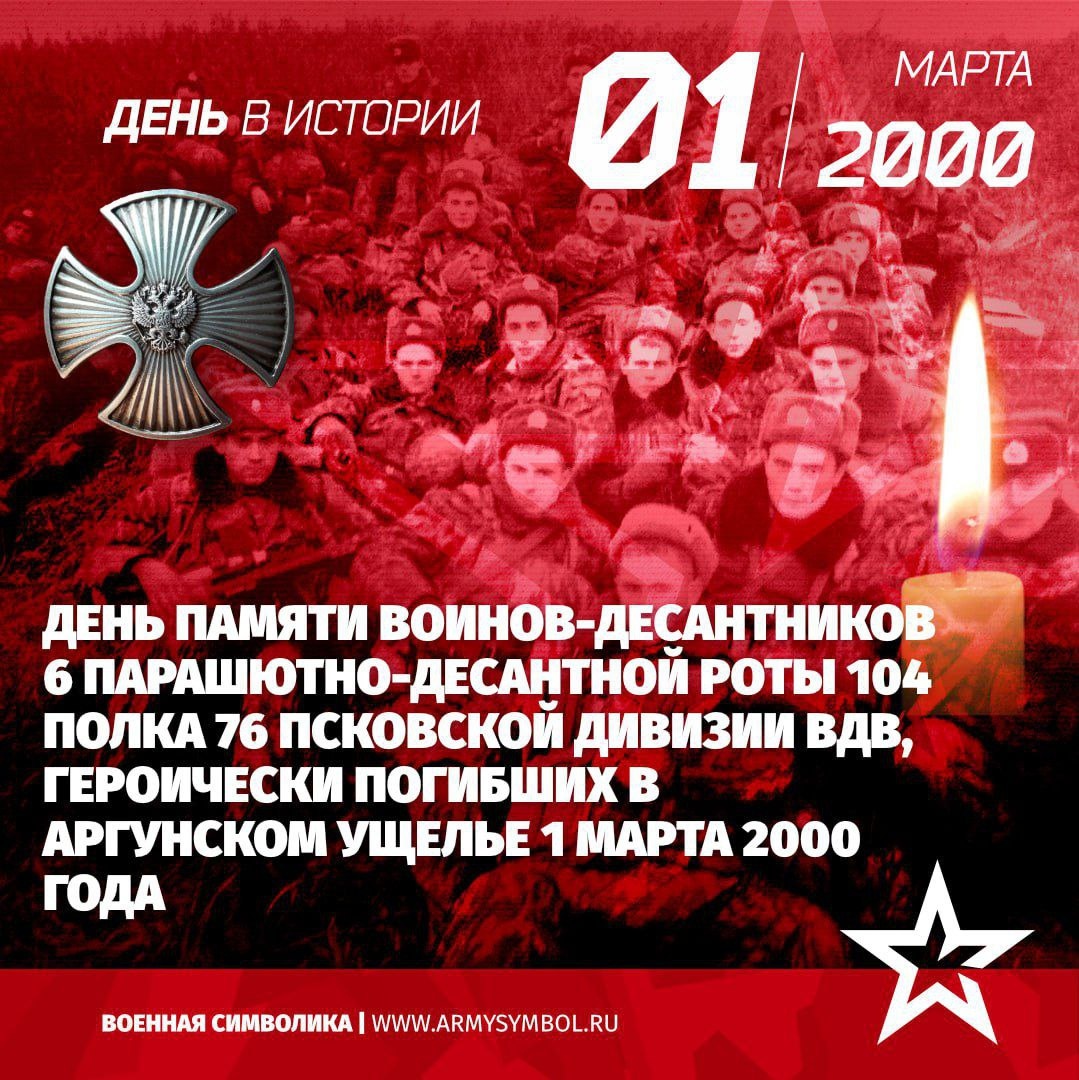 🇷🇺 День памяти воинов-десантников 6-ой парашютно-десантной роты 104 полка 76 Псковской дивизии ВДВ, героически погибших в Аргунском ущелье
