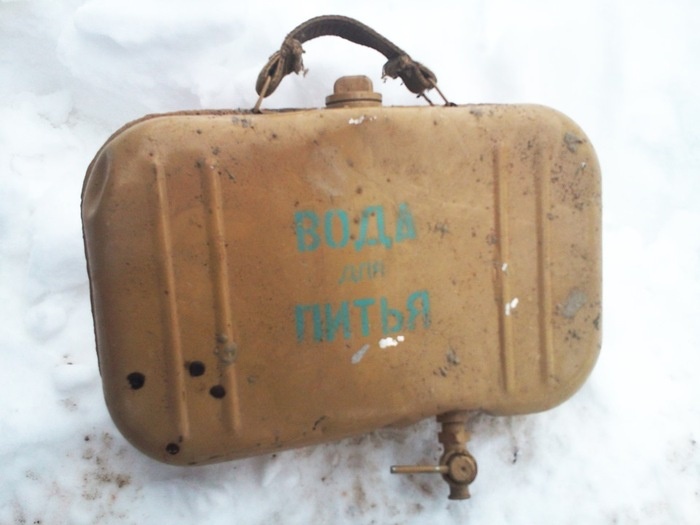 Здравствуйте уважаемые Пикабушники, продолжаю повествование о флажках родом из Советского Союза. На фотографии алюминиевая канистра для питьевой воды. Штатно с завода была установлена в УАЗ-452А Санитарный, И в левой задней двери УАЗ-469. На фото ниже видно заднюю стенку канистры, именно этой стенкой бачок прижимался к кузову автомобиля. Для того что бы налить воду в кружку, нужно было открыть кран и вода самотёком вытекала, при этом канистра оставалась закреплённой на кузове. На фото ниже УАЗ-452А Санитарный. Вид внутри осека для размещения раненых. Справа по центру на стене перегородки размещена наша канистра. На схеме ниже под номером 6. Из канистры можно было не только брать воду для питья, но и помыть руки при необходимости действуя как с рукомойником. А вот ещё одна канистра для питьевой воды для людей. Штатно она размещалась на военном Автомобиле Транспортёр Переднего Края (ТПК) ЛУАЗ - 967. Видео из ютуба. Ниже текст из Википедии. ЛуАЗ-967 был создан по заказу ВДВ ВС СССР для эв