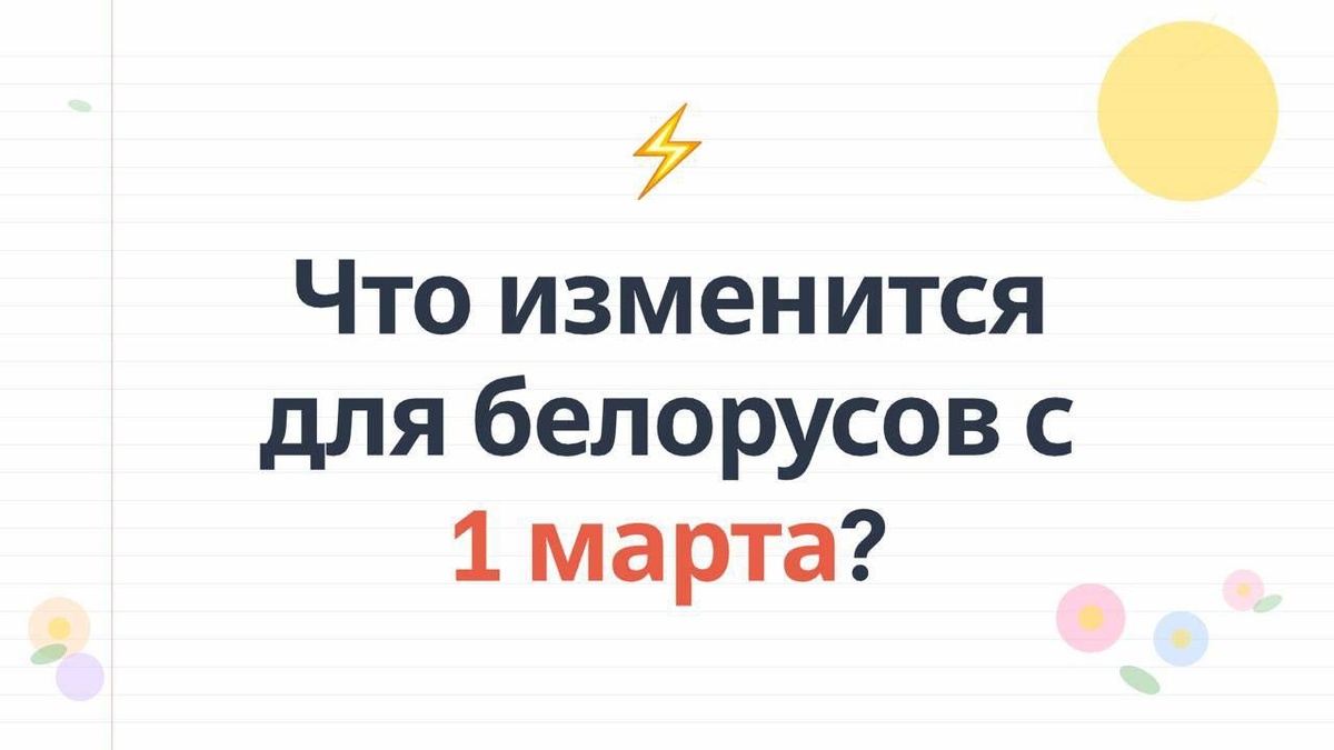 ? С сегодняшнего дня в силу вступает целый ряд изменений, которые затронут кошельки, отдых и повседневные привычки беларусов. Собрали главное в одной ленте. 🔹 ПЛАТЕЖИ Тарифы на ЖКХ традиционно индексируются. Для типовой квартиры средний чек вырастет на 22,5 рубля. ▫️Газ прибавит 0,93 рубля (+7,07%) ▫️Электроэнергия подорожает на 2,99 рубля (+7%) 🔹 ДЕТИ И ШКОЛА С 1 марта в каждом районе страны откроется минимум одна группа в яслях — для самых маленьких (до 2 лет). А весенние каникулы у школьников продлятся 8 дней: с 22 по 29 марта. 🔹 ОТДЫХ ЗА ГРАНИЦЕЙ Сразу два анонса для любителей дальних стран: ✈️ С 10 марта стартуют чартеры в иорданскую Акабу (рейсы раз в 11 дней до конца мая). ✈️ С 31 марта «Белавиа» открывает рейсы во вьетнамский Нячанг (дважды в неделю, лететь около 11 часов). 🔹 ОХОТА И РЫБАЛКА У рыболовов — время ограничений. С 1 марта по 15 апреля действует нерестовый запрет на ловлю щуки. ⚠️ Штраф нарушителям — до 1350 рублей, плюс компенсация ущерба (ещё 405 рублей за