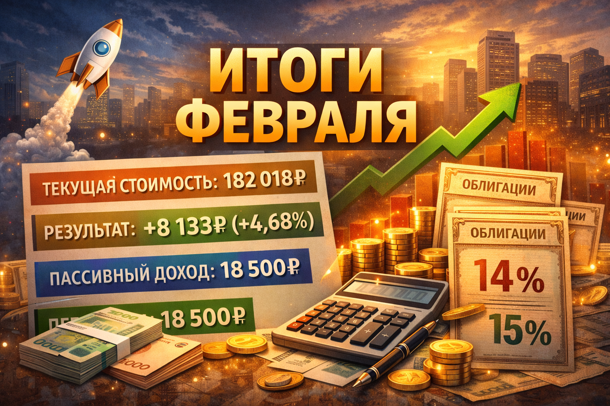 Привет ребят, этот месяц пролетел просто как ракета, я совсем его не заметил, учеба, тренировки и соревнования, с которых я сейчас еду на поезде и глядя в окно из своего купе пишу этот пост... Ну что ж, давайте начнем основного портфеля Текущая стоимость: 182 018₽ Всего внесено: 173 885₽ Результат: +8 133₽(+4,68%) Пассивный доход подрос до 18 500₽, это на ≈ 1200₽ больше чем в предыдущем месяце. Продаю двигаться ко второму несгораемому косарику. Что купил в свой портфель? Выделял в этом месяце 7000₽ на покупки, но почему то каким то образом вышло 10 500₽ — Сбер 3 штучки, как всегда на сдачу, уж очень удобная цена. — Сургут-п 30 штучек — НОВАТЭК 2 штучку — Татнефть 2 штучки — ИКС 5 1 штучку На ИИС купил облигации — Брусника 002P-04 — Эталон-Финанс 002P-04 — Уралкуз 001P-03 Начал побольше на ИИС отправлять деньжат, чтоб добить долю облигаций до 15%, тем более пока они приносят доходность больше 15% годовых. Теперь расскажу про те 400 000₽ на которые мы с женой купили ОФЗ (пост про эт