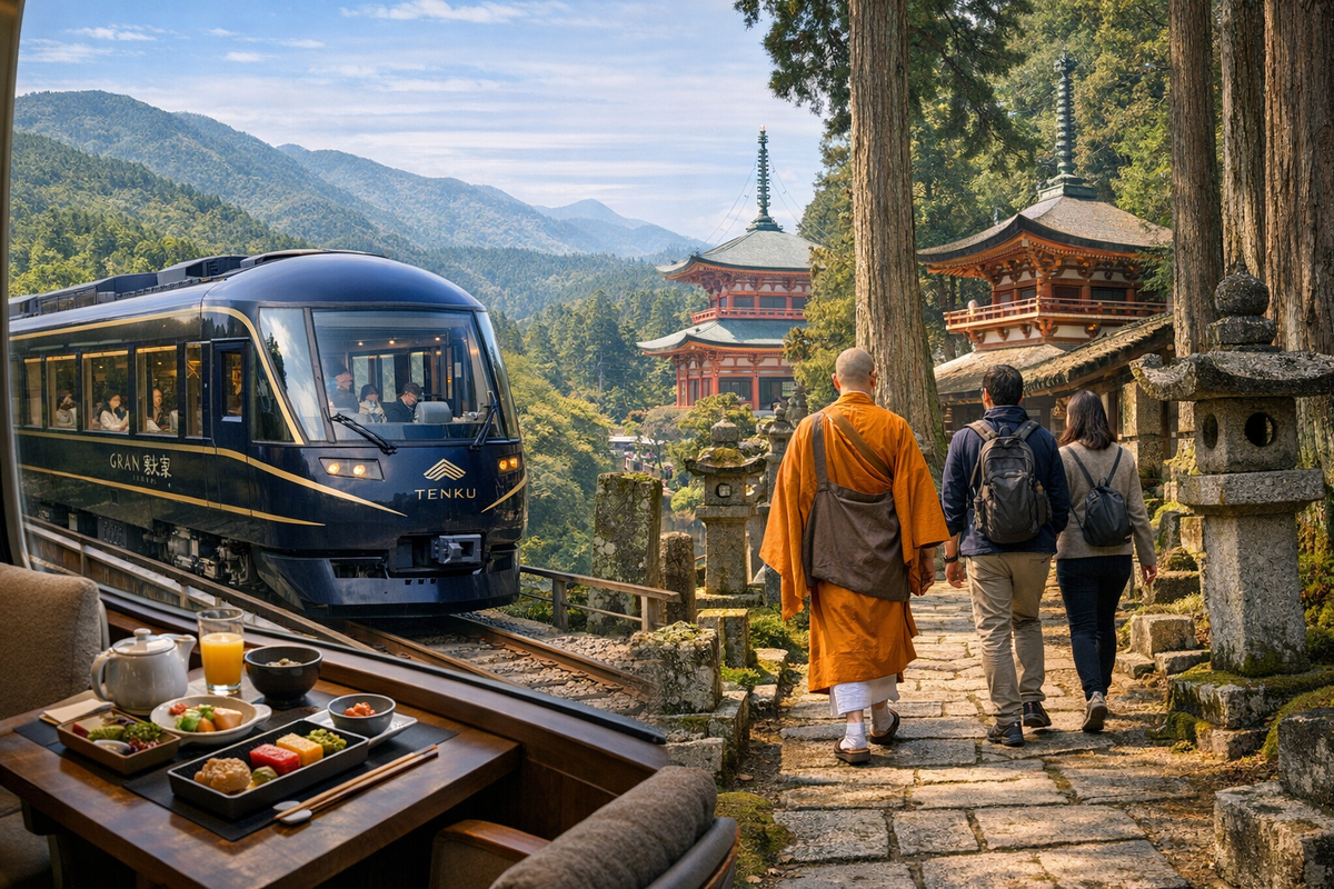 Иногда путешествие запоминается не только точкой на карте, а тем, как вы к ней добрались. В Японии как раз появляется такой формат: компания Nankai Electric Railway запускает туристический поезд GRAN Tenku — маршрут для тех, кто любит «медленно, красиво и со вкусом». Поезд будет курсировать между станцией Намба (Осака) и станцией Гокуракубаси — это направление к горе Коя. ⏱ Время в пути — около 90 минут.