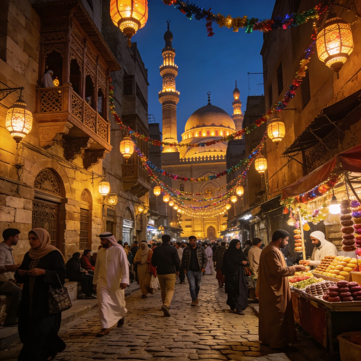 После вечерней трапезы египетская столица переживает второе рождение. Улицы заполняются людьми, отправляющимися на молитву «Таравих», после которой наступает время ночных гуляний. В историческом районе Аль-Хусейн и на улице Эль-Муиз жизнь бьет ключом до самого рассвета. Кафе переполнены, в воздухе витает аромат свежей «кунафы» и «атаифа» — традиционных сладостей, которые готовят специально к этому месяцу.
