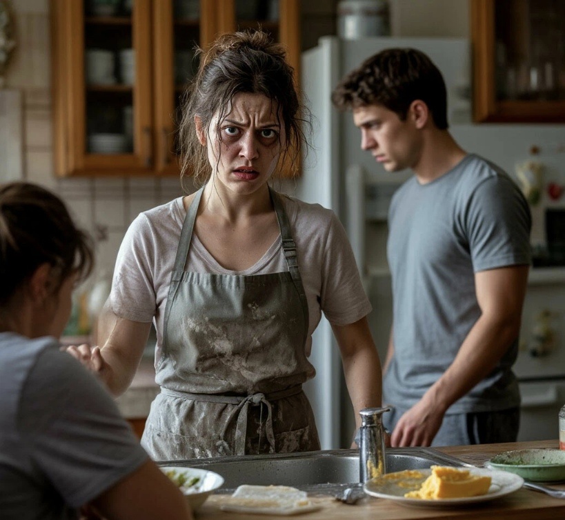 Яна стояла у раковины и смотрела, как мыльная вода медленно уходит в слив. Гора грязных тарелок росла с каждой минутой, а на кухне за её спиной гремели голоса. Муж Денис сидел во главе стола, свекровь Раиса Павловна размахивала вилкой, рассказывая, какой вкусный получился салат, золовка Инна с мужем Серёжей хохотали над какой-то своей шуткой. Никто даже не думал помогать.