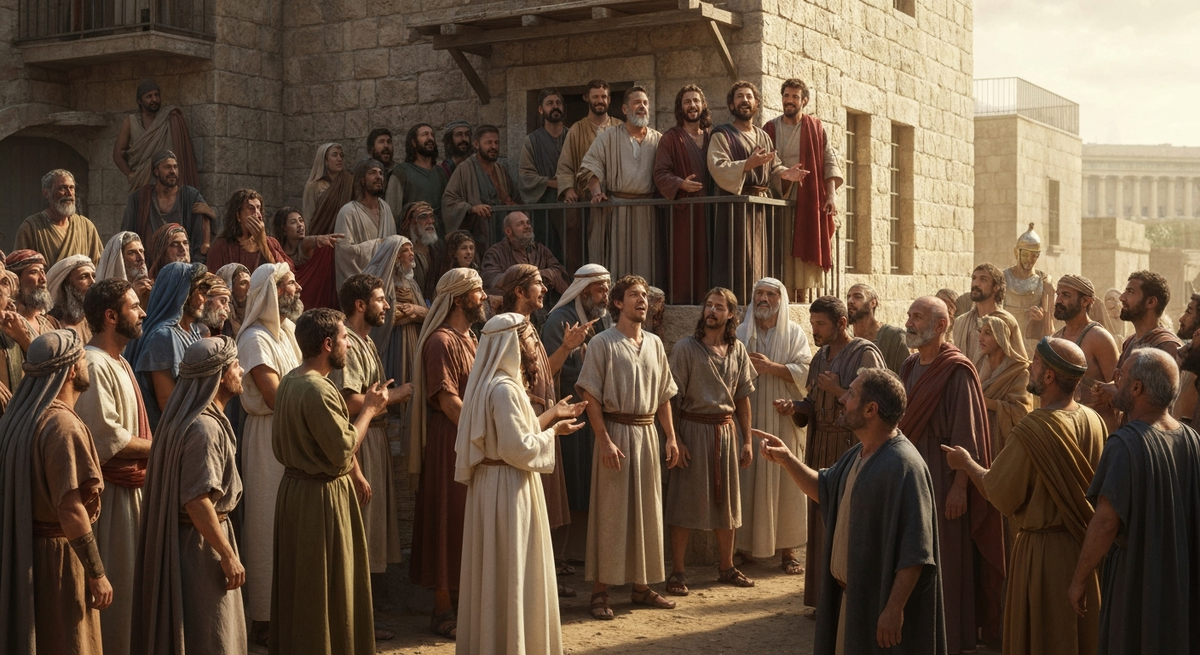 — Они напились сладкого вина! — выкрикнул кто-то из задних рядов. Толпа ответила нервным смехом. Люди не понимали, что происходит, и это пугало их. В этот момент вперед вышел Петр. Он встал на камень у входа или на нижнюю ступень лестницы. Рядом с ним оказались остальные одиннадцать апостолов — те, кто еще месяц назад прятался за закрытыми дверями. Петр поднял руку. Толпа мгновенно затихла. Не из-за его известности — в Иерусалиме знали лишь галилейского рыбака. Люди замолчали, почувствовав в его жесте силу, которой не бывает у обычных людей. — Мужи Иудейские и все, кто живет в Иерусалиме! — громко и четко произнес Петр. — Слушайте, что я скажу! Толпа внимала его словам. Это было первое чудо дня — чудо внимания. — Они не пьяны, как вам кажется, — усмехнулся Петр, и в его усмешке была горечь. — Сейчас всего три часа дня. В толпе раздался добродушный смех. Действительно, в девять утра не пьют, даже в праздник. — Но это предречено пророком Иоилем: «И будет в последние дни, — говорит Бог,
