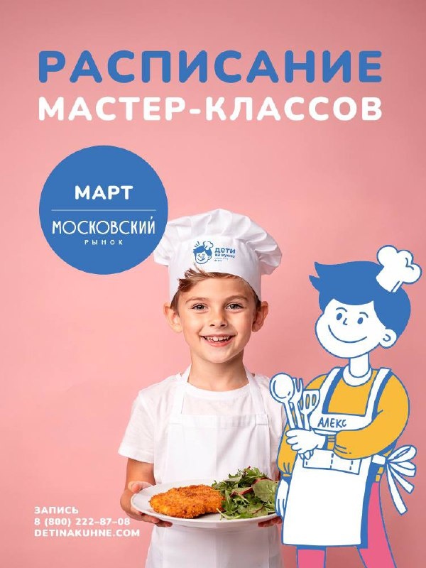 🍰 На самый весенний праздник 8 марта мы приготовим розовый бургер, набор шоколадных конфет в подарочной упаковке, клубничный бенто-торт и другие красивые и вкусные подарки для мамы. А также будем готовить наши хиты и трендовые блюда! 14 марта приглашаем праздновать день рождения «Дети на кухне» вместе! Целый день проводим кулинарные мастер-классы с любимыми героями ваших детей, а также дарим подарки всем участникам от наших партнёров 🎁 30 марта стартует наш кулинарный лагерь! «Кондитерский курс» на Севкабель Порт и смена «Азии» на Московском рынке. Подробная информация в наших постах Посмотреть полное расписание и записаться на мастер-класс можно по ссылке: https://detinakuhne.com/culinary/#desk 🧑🍳 📍Московский рынок, Решетникова ул., 12 📍Севкабель Порт, Кожевенная линия, 40