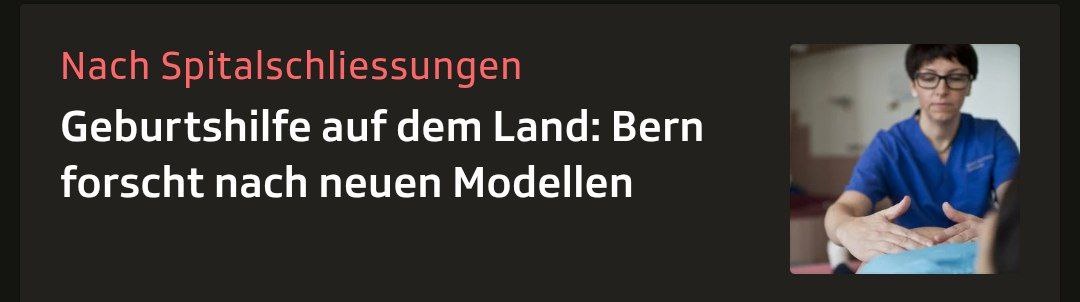 Акушерская помощь в сельской местности: Берн исследует новые модели Как ухаживать за беременными, если до больницы слишком далеко? Впервые исследуются альтернативные модели оказания помощи. Цвайзиммен, Фрутинген, Лангенталь — в кантоне Берн недавно были закрыты несколько родильных отделений в больницах, отчасти из-за того, что число рождений снижается. Для беременных и рожениц в сельской местности это имеет последствия: порой им приходится преодолевать очень большие расстояния для получения медицинской помощи. Каким образом можно улучшить их обслуживание? Какие альтернативы классическим родильным отделениям в больнице существуют? Эти вопросы изучают кантон Берн совместно с Бернским прикладным университетом и группами больниц Spitäler FMI и Spital STS в Бернском Оберланде. Это первый случай, когда акушерская помощь в этом контексте изучается научно. Поликлиника или акушерка в качестве точки обращения На первом этапе исследуется текущее положение дел и потребности семей, врачей, ак
