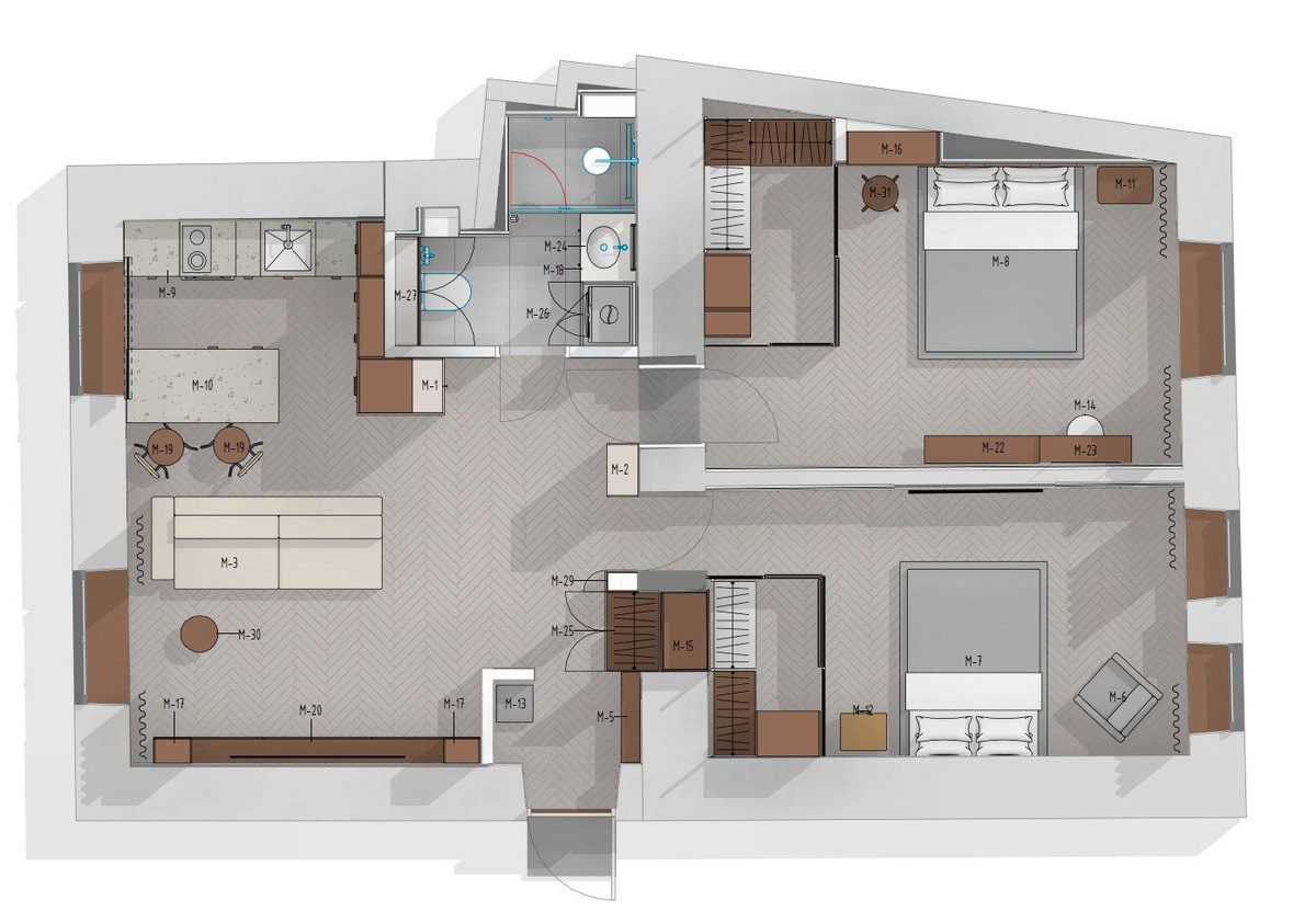 Вы написали вопрос о планировочном решении квартиры с обалденным сочетанием текстур и материалов переплетённых с природой