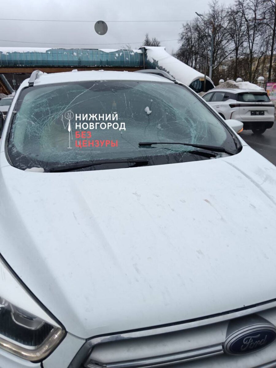 В Нижнем Новгороде на проспекте Гагарина с надземного пешеходного перехода на проезжающий автомобиль обрушился крупный пласт снега и льда. О происшествии сообщил телеграм-канал «Нижний Новгород БЕЗ ЦЕНЗУРЫ». По информации источника, глыба пришлась на лобовое стекло легковушки, за рулём которой находилась девушка. В результате удара стекло разбилось, осколки осыпались внутрь автомобиля. Несмотря на произошедшее, пострадавших нет. Водитель, по словам очевидцев, находилась в состоянии шока, однако медицинская помощь не потребовалась. Обстоятельства случившегося уточняются. Напомним, С 2 марта проезд по М-12 в Нижегородской области подорожает на 5–15% Фото: t.me/bez_cenz_nn