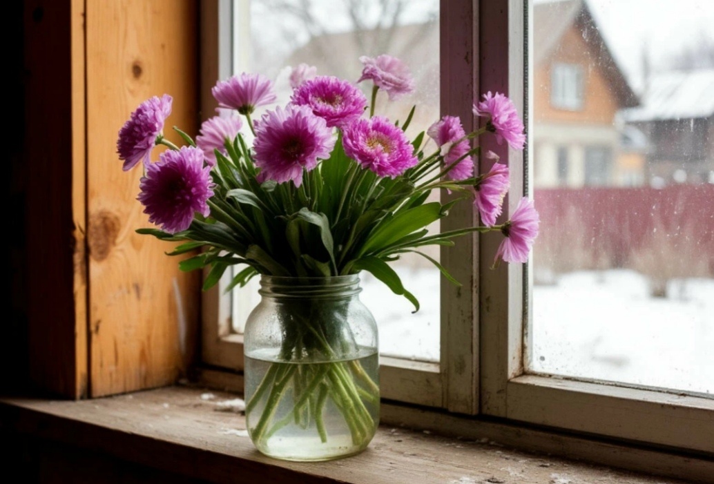 — А с цветами-то что делать? — вдруг спросил он, кивнув на букет, так и стоявший в ведре с водой, куда Надя его поставила.