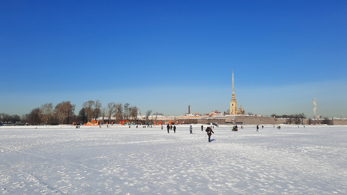 Итак, после Фестиваля китайских фонарей я решил срезать угол и пойти домой кратчайшим путём. От стрелки Заячьего острова. До стрелки Васильевского острова. Можно было, конечно, выбрать маршрут ещё короче и идти прямо к Эрмитажу, но я хоть и больной на голову, но всё же не на всю, а только частично. Там же лёд периодически разрезают ледоколом и он недостаточно прочный. А здесь, где Малая Нева отходит от Большой, гуляй не хочу. Выход на лёд, правда, всё равно запрещён, но не совсем здоровых людей, типа меня, это не останавливает. Водила и второй пилот прогулочного кораблика на воздушной подушке машут отдыхающим руками. Что они при этом имеет в виду, не совсем понятно. То ли приветствуют, то ли прощаются. Тренд сезона - фотосессия лёжа на льду. Многие так делают, как я заметил. Не знаю, что это значит. А ещё гуляют по рекам и каналам с собаками. Вот тут понятно. За питомцем убирать не надо. Лёд растает и концы в воду, как говорится. А вообще, красиво вокруг, ракурсы необычные, даже самом