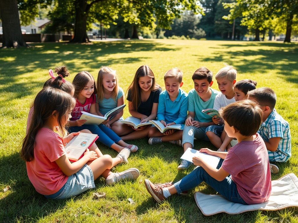 «Это он! Наконец–то и Антон пришел!», — воскликнула рыжеволосая девчушка лет десяти и захлопала в ладоши. На ее хлопки обернулись все, кто сидел на траве около входа в беседку. Это были дети разного возраста, одиннадцать мальчиков и девочек, с разным цветом волос и глаз, и одетые совершенно по-разному. Но все-таки было что-то, что их объединяло — книги. У каждого ребенка была книга. И все они, сейчас, в ожидании своего товарища, были заняты чтением.